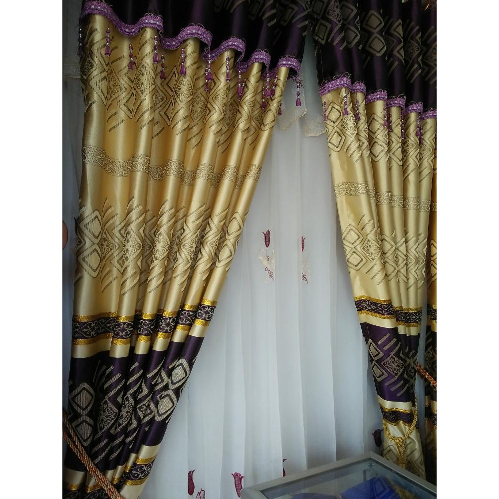 Gorden Jendela Rumah Gold Ungu Berponi | Shopee Indonesia