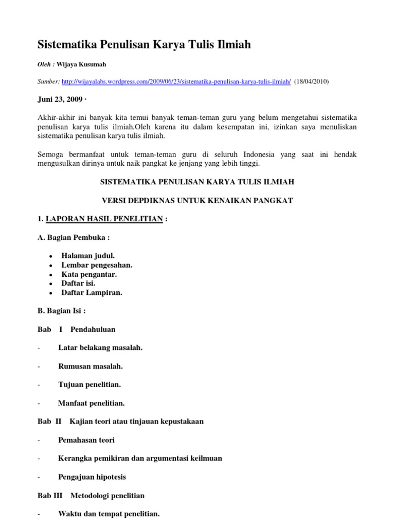 Sistematika Penulisan Karya Tulis Ilmiah