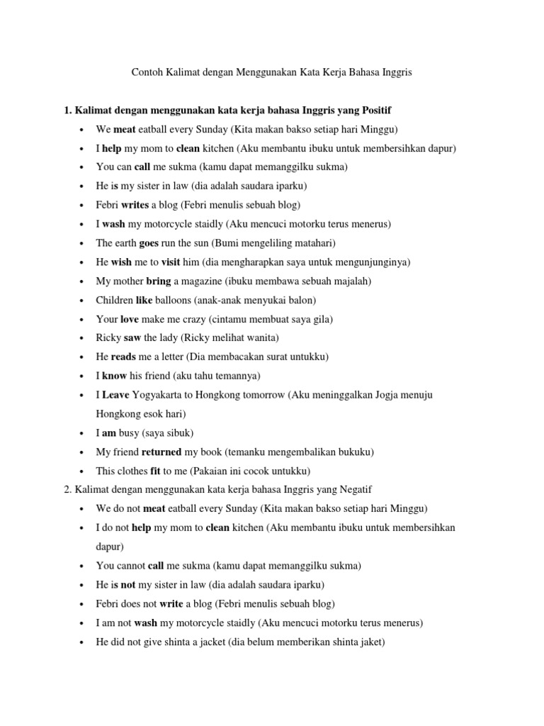 beberapa contoh kalimat menggunakan kata kerja dalam bahasa inggris