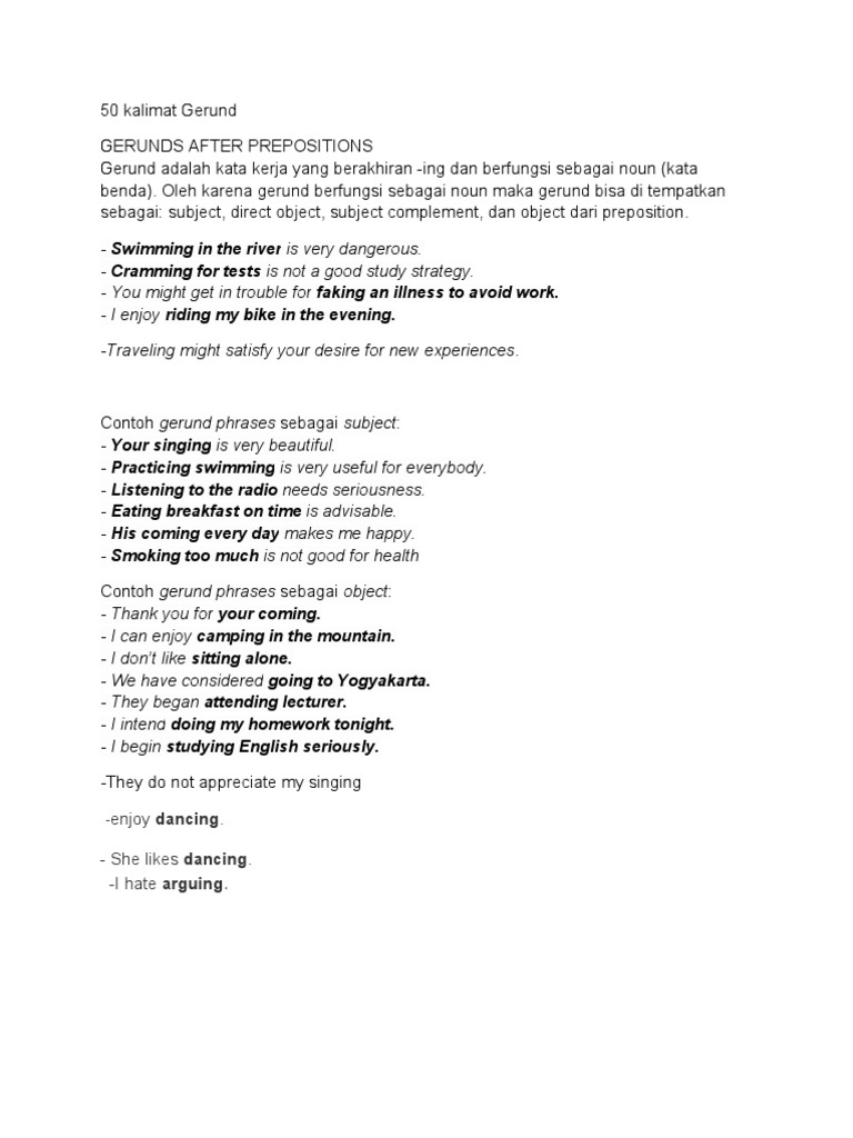 Contoh kalimat gerund - Belajar Bahasa Inggris Online