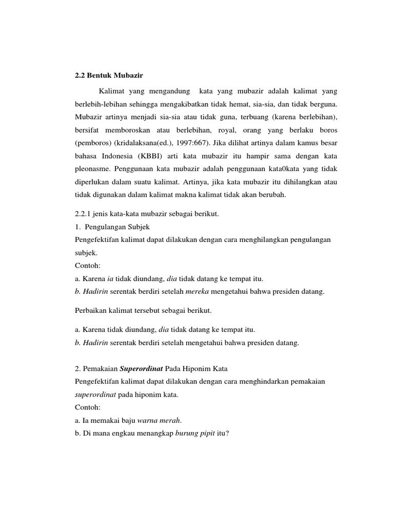 Pleonasme merupakan pemakaian kata yang mubazir 2