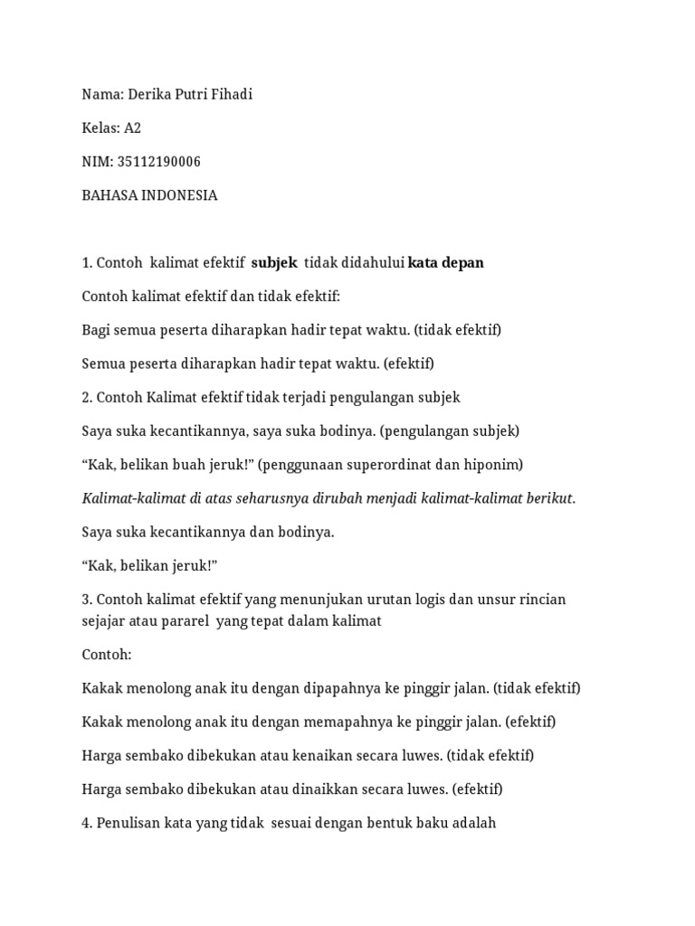 Tugas 2 Bahasa Indonesia*: Pengertian Kata, Kalimat Efektif