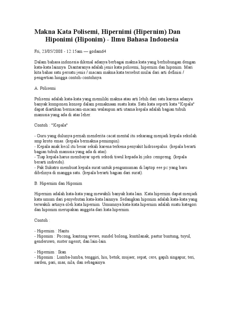 Kalimat-kalimat Hiponim, Homonim, Sinonim, Antonim, & Polisemi …