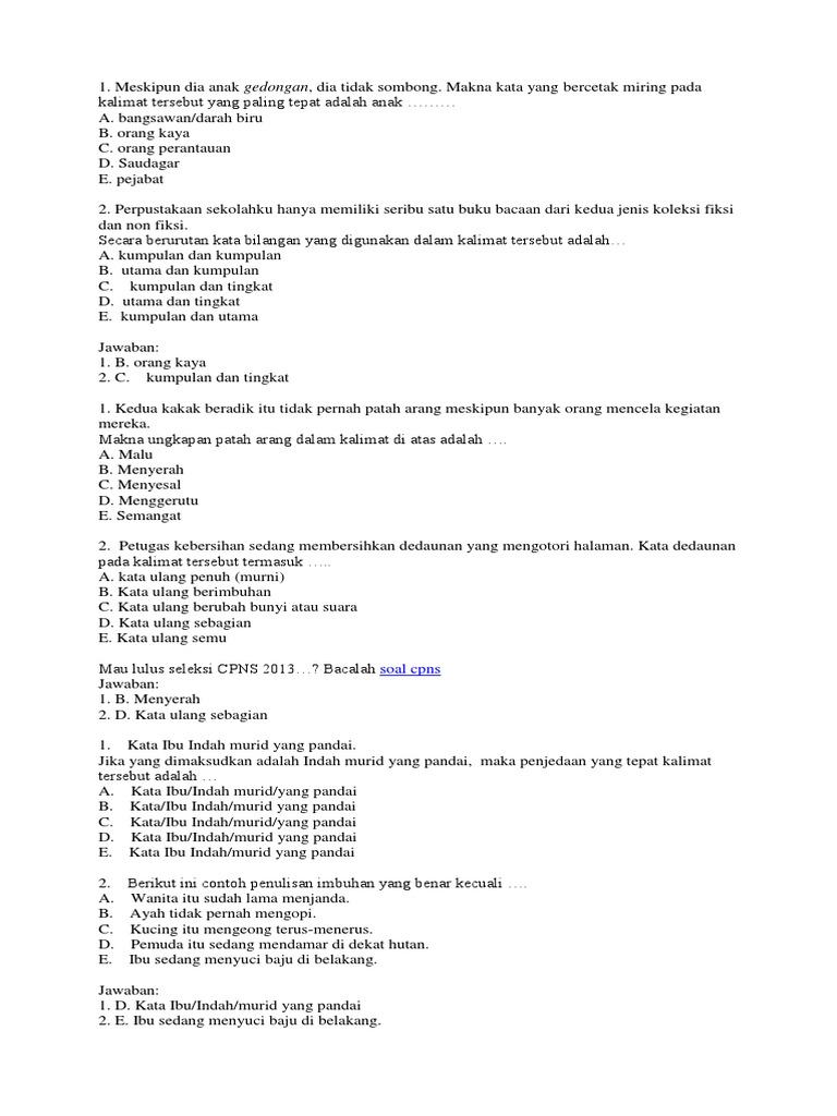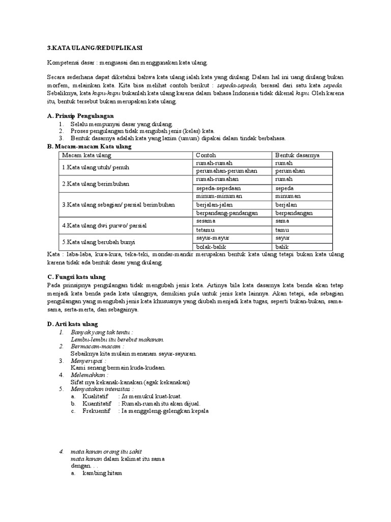 Contoh Kata Ulang | Contoh Soal Dan Materi Pelajaran 7