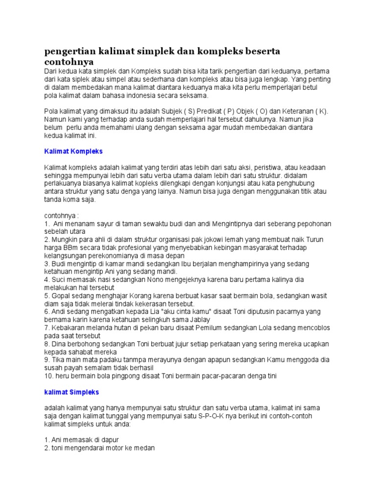 Kalimat Komplek Dan Simplek Lengkap