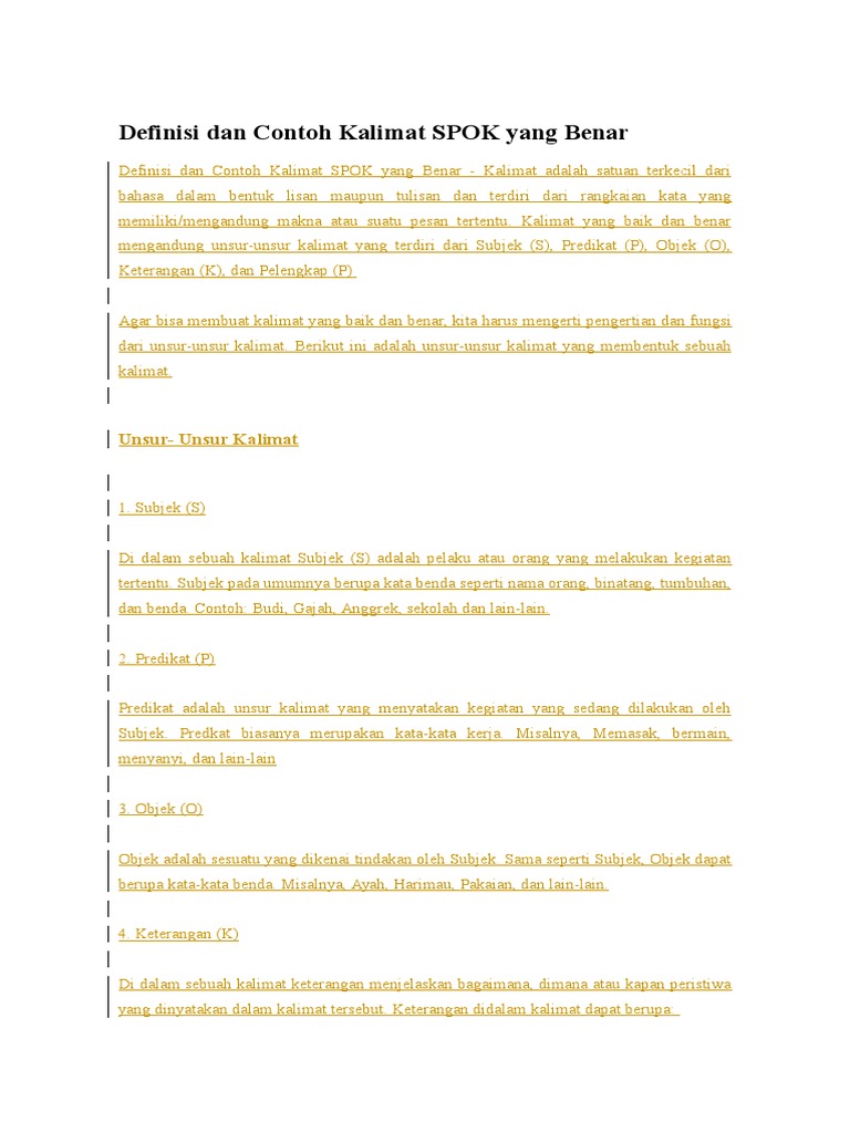 DOC) Definisi dan Contoh Kalimat SPOK | agoes sugie - Academia.edu