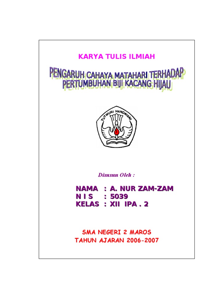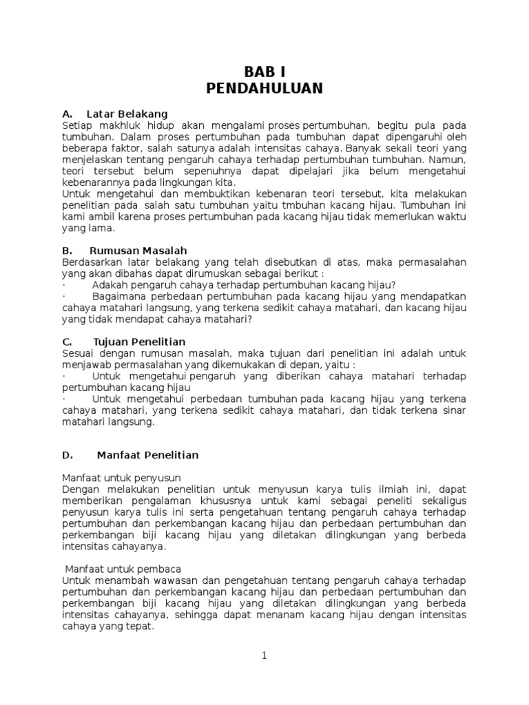 DOC) Contoh 1. Karya Ilmiah Biologi: Tumbuhan Kacang Hijau | Hizki Madriddista - Academia.edu