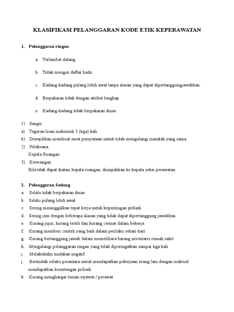 Klasifikasi Pelanggaran Kode Etik Keperawatan