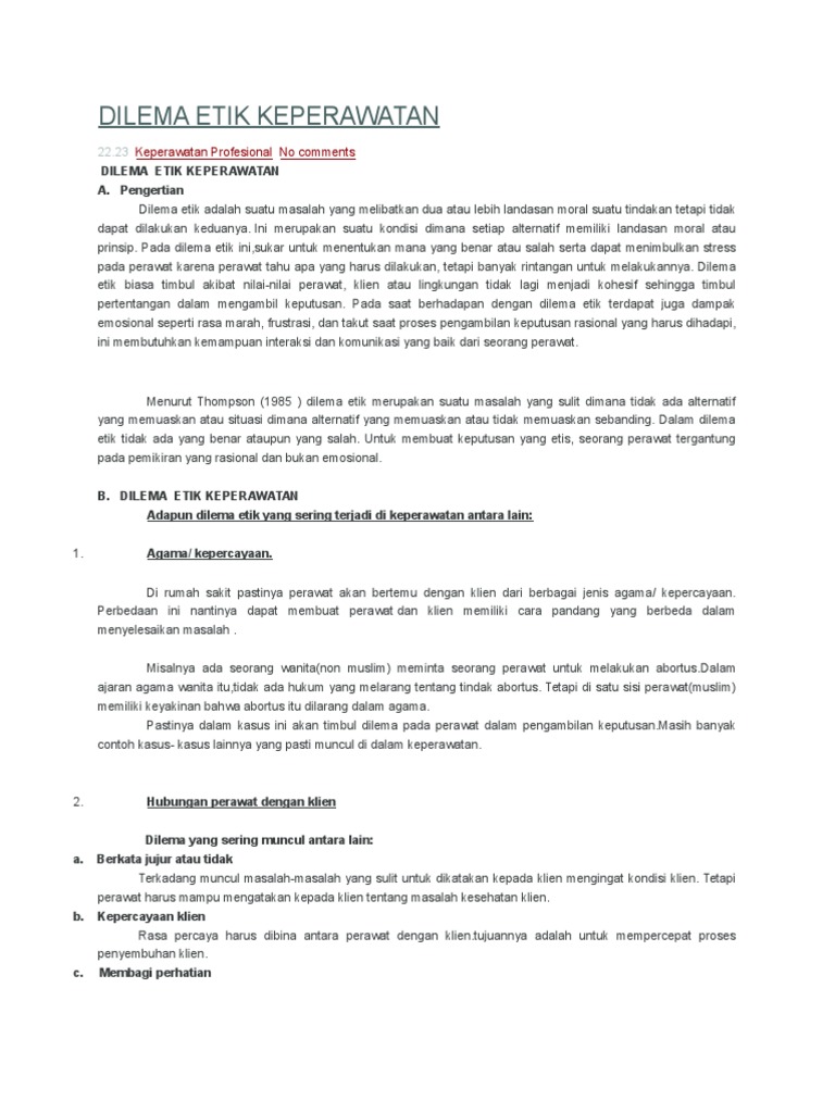 DOC) TUGAS KEPERAWATAN GAWAT DARURAT II MENGANAI DILEMA ETIK KEPARAWATAN | Cyntia Risandi - Academia.edu