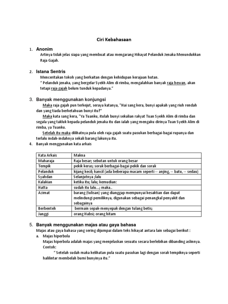 Beri kami 5 contoh kata arkais di dalam cerita hikayat putri …