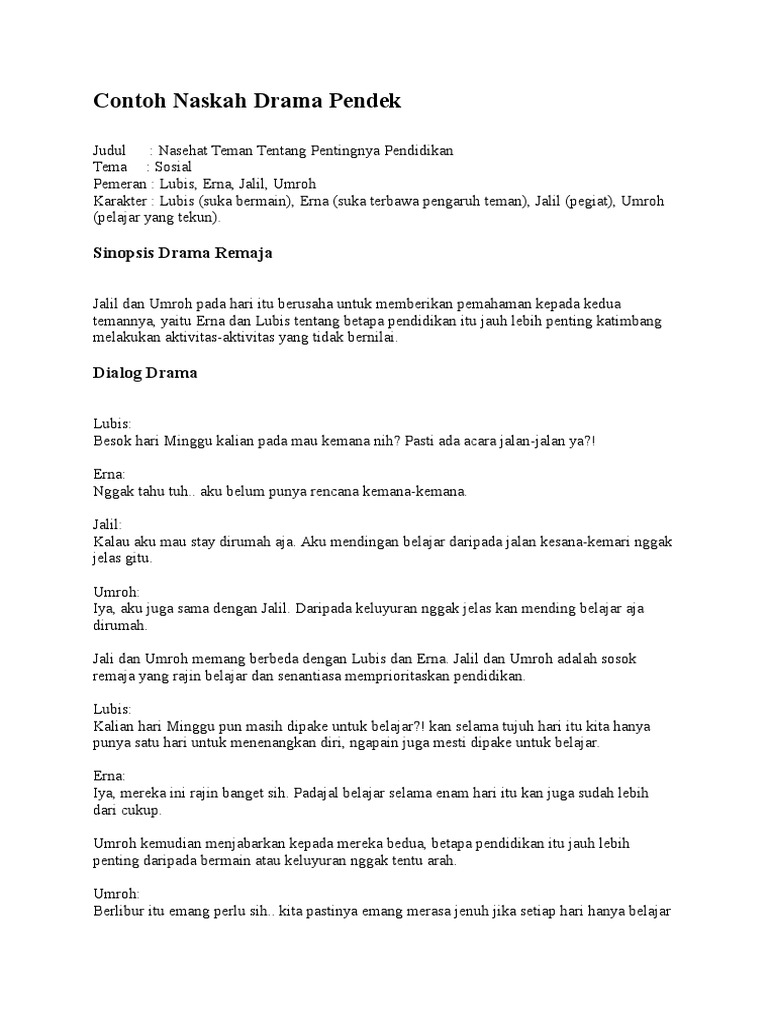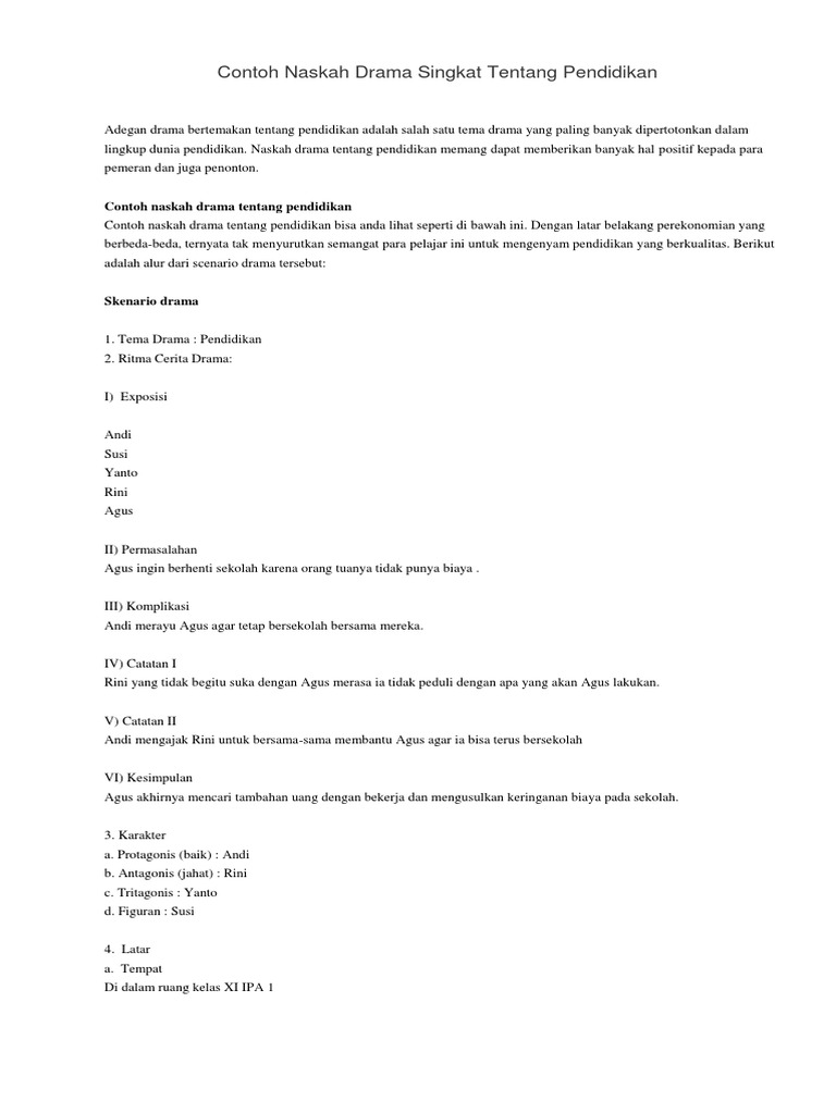 Contoh Naskah Drama Pendidikan - Drama - CARApedia