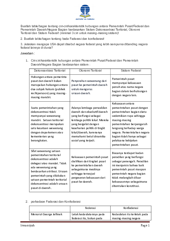 Apakah perbedan antara konfederasi, negara kesatuan, dan negara …