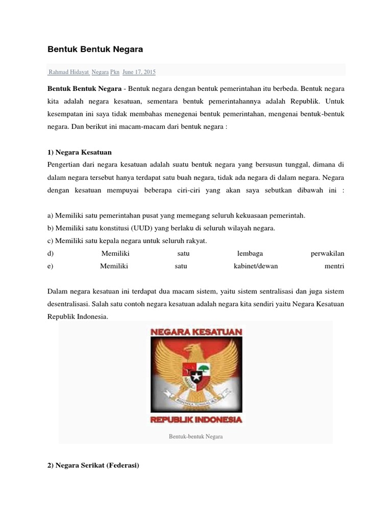 Bentuk Negara Serikat - PELAJARAN BAHASA INDONESIA DI JARI KAMU