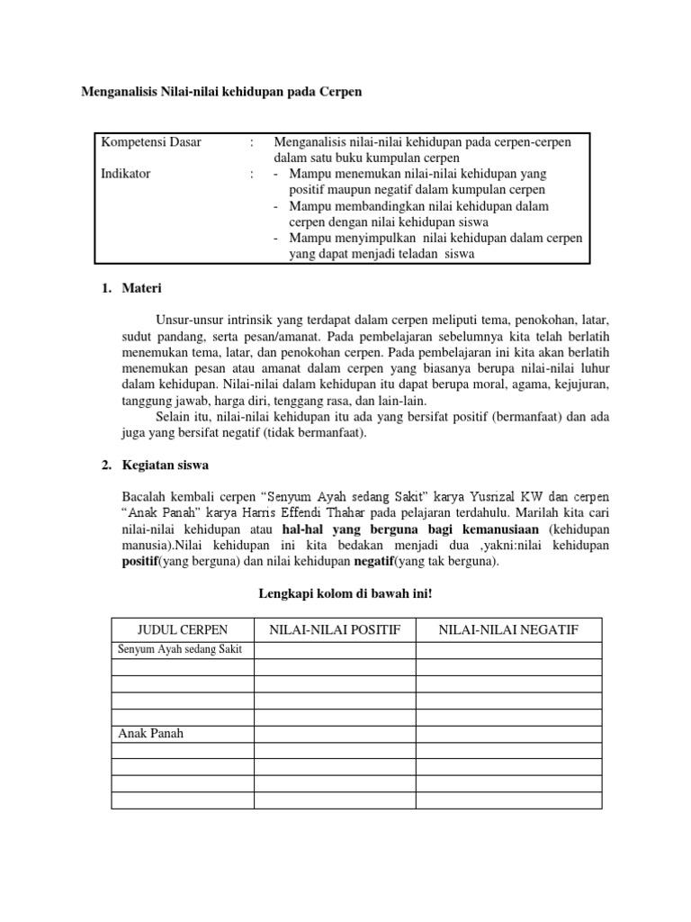 Populer Contoh Soal Menganalisis Nilai Nilai Kehidupan Dalam Cerpen