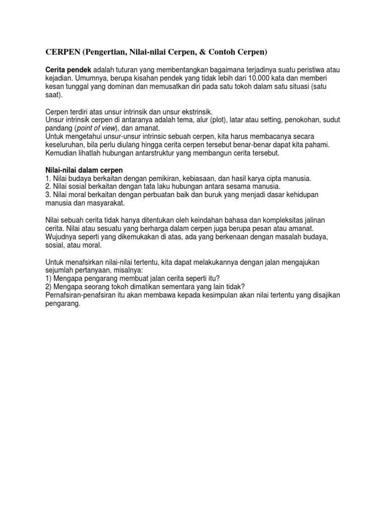 Contoh Nilai Nilai Dalam Cerpen