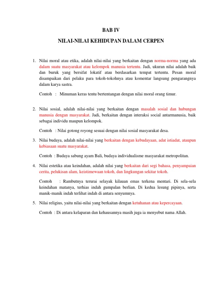 Contoh Nilai Nilai Kehidupan Dalam Cerpen – Berbagai Contoh