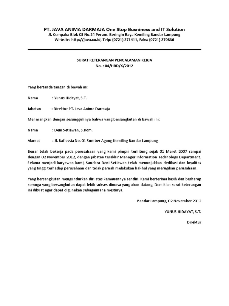 Free Download Contoh Surat Pengalaman Kerja Doc