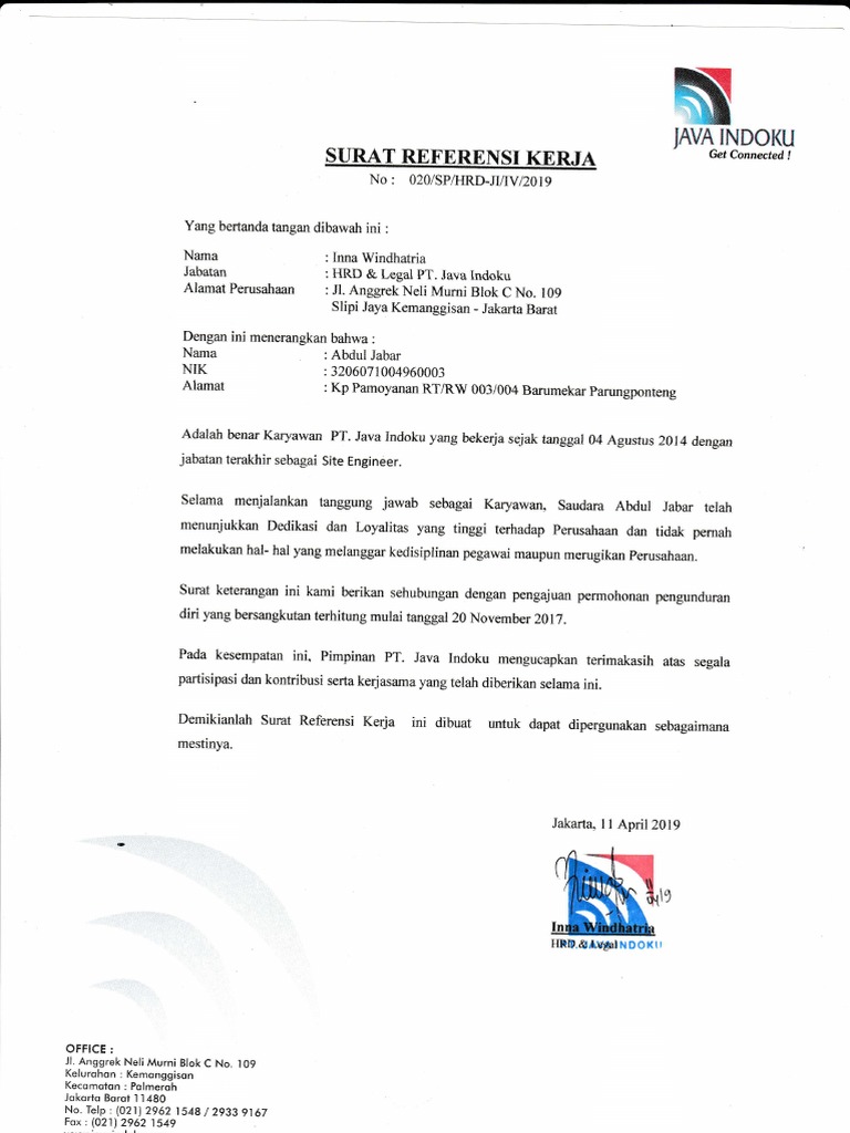 10+ Contoh Surat Referensi Kerja Sebagai Penguat Surat Lamaran Kerja - Contoh Surat