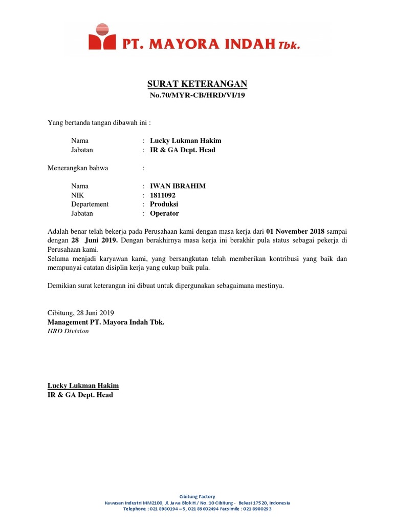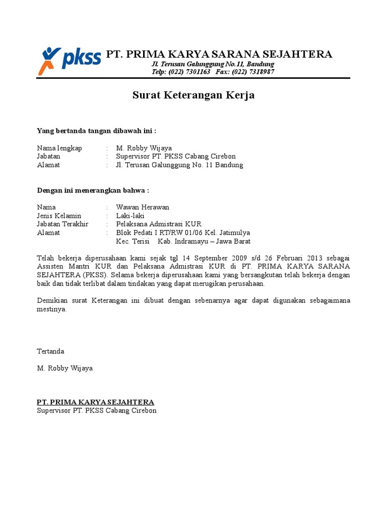 DOC) Contoh format surat keterangan kerja | Dwy Anto - Academia.edu