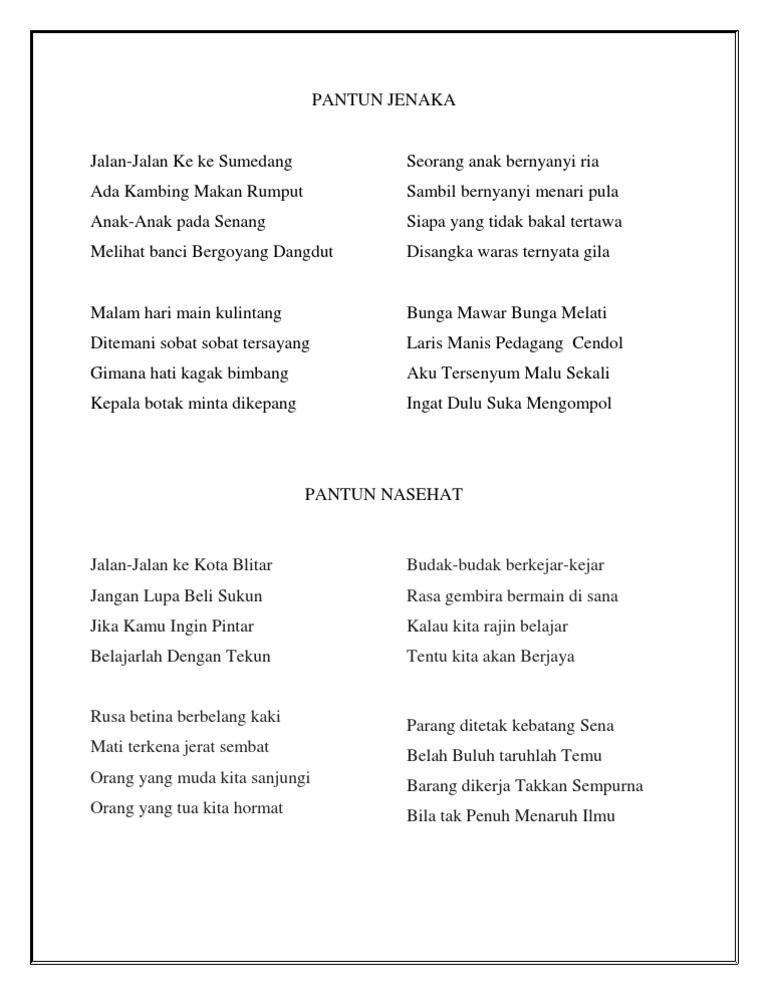 DOC) Macam-Macam Pantun Dan Contohnya | Rendi Permata - Academia.edu