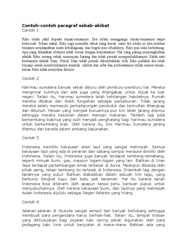 Contoh Paragraf Sebab Akibat 1 Akibat 2 - Barisan Contoh