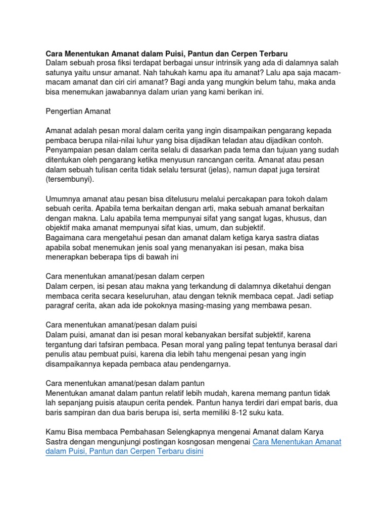 Cara Menentukan Amanat Dalam Karya Sastra