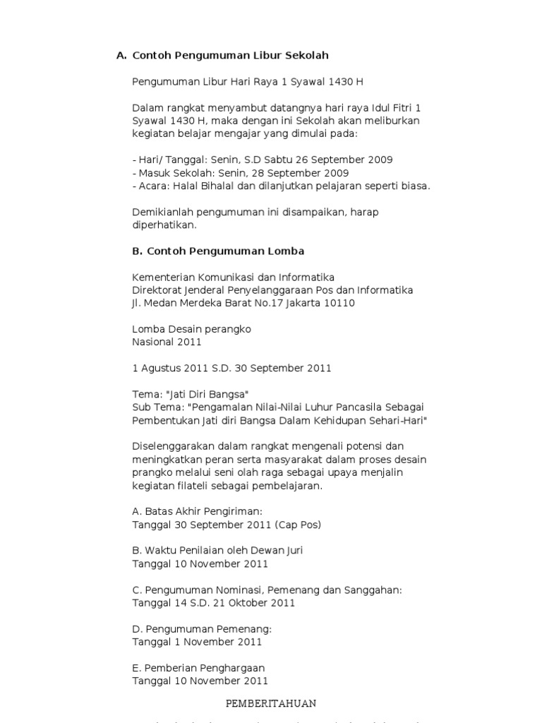 Contoh Pengumuman Resmi dan Tidak Resmi - Kumpulan