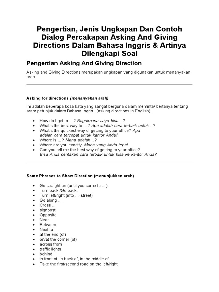 Asking and Giving Directions Beserta Soal Terlengkap - Paja Tapuih
