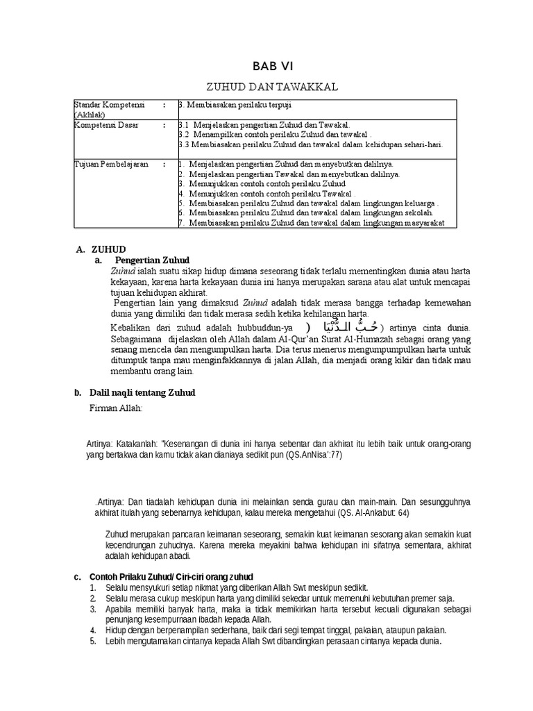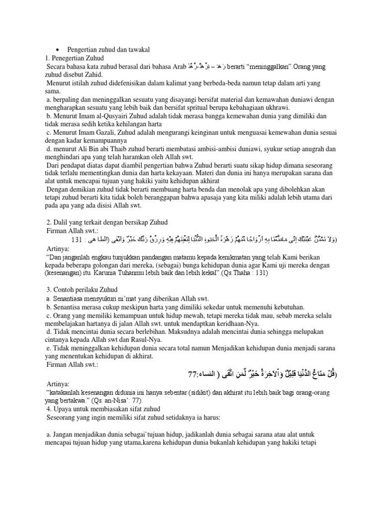 Zuni Rpp Al Islam - Zuhud Dan Tawakal