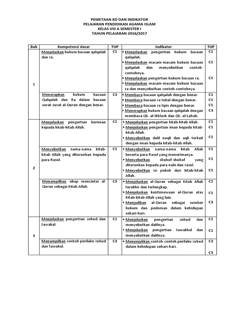 Pemetaan Kd Dan Indikator Pai Viii A