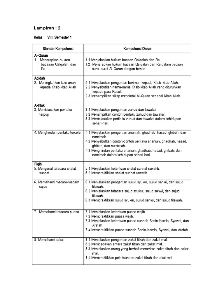 Standar Kompetensi dan Kompetensi Dasar Kelas 8