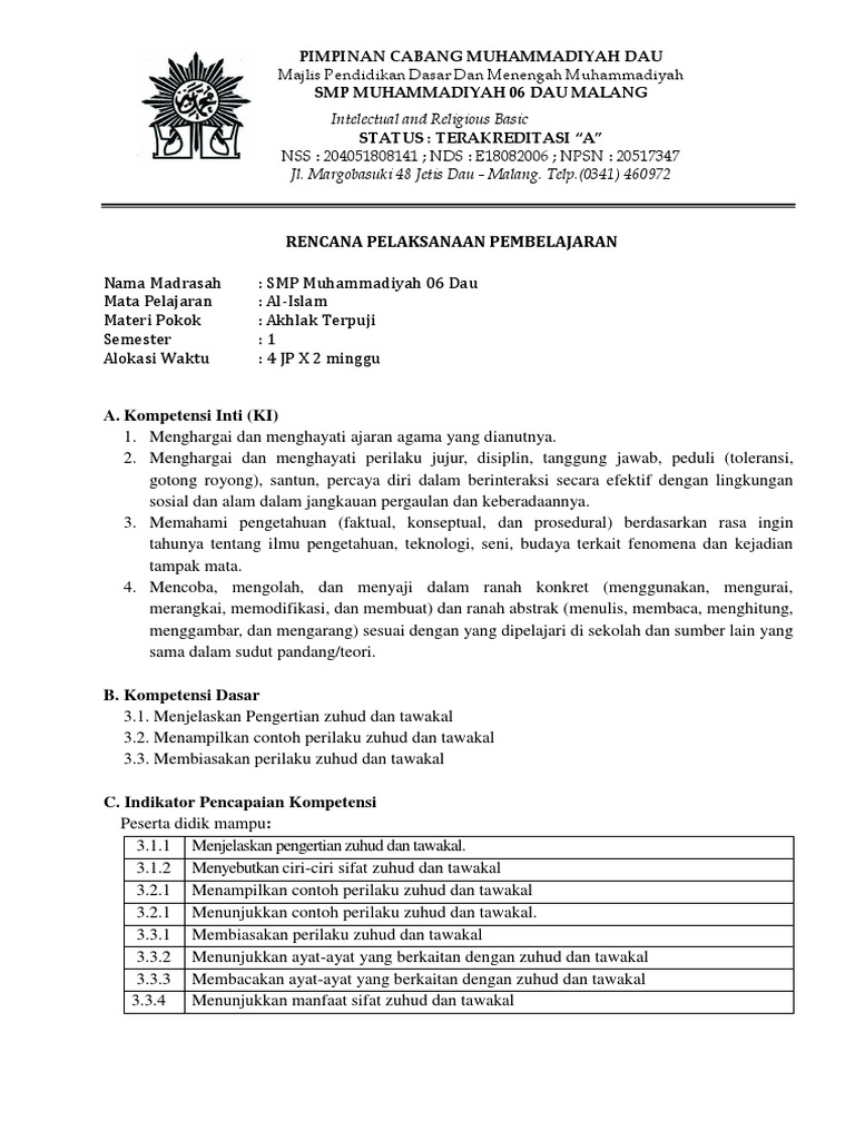 DOC) Perwujudan sifat Zuhud, Wara’, Tawakal, Ikhlas dalam …