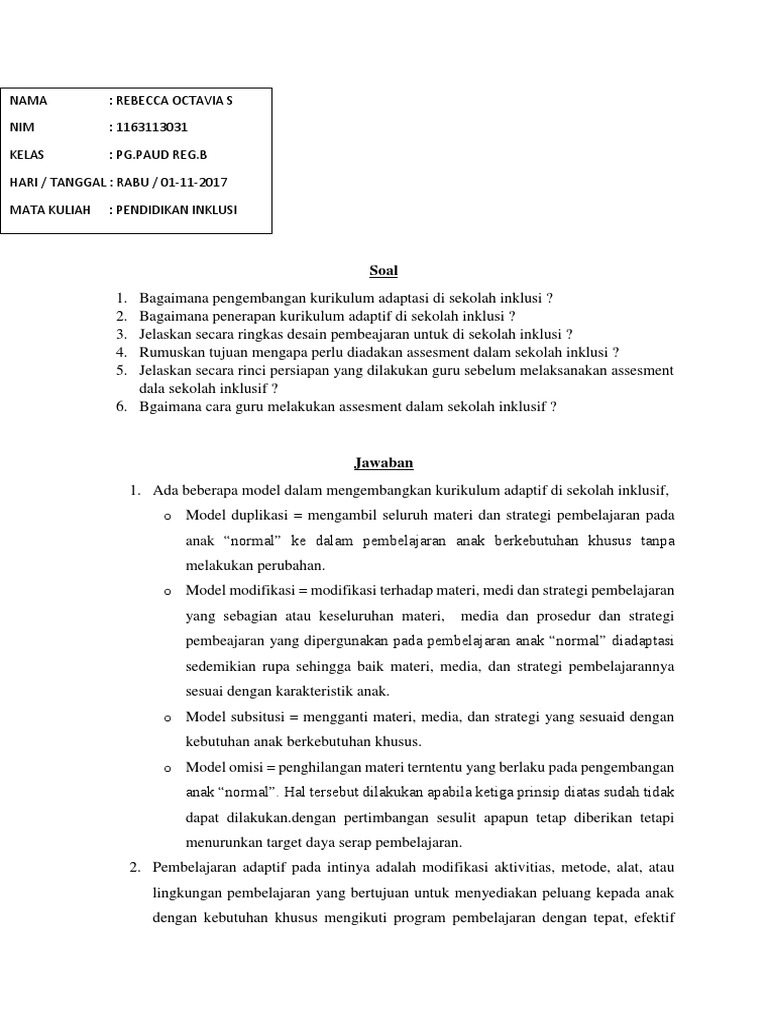 DOC) Soal Beserta Pembahasan Kunci Jawaban Pengantar Pendidikan Anak Berkebutuhan Khusus PDGK4407 | Nurleni Firman - Academia.edu