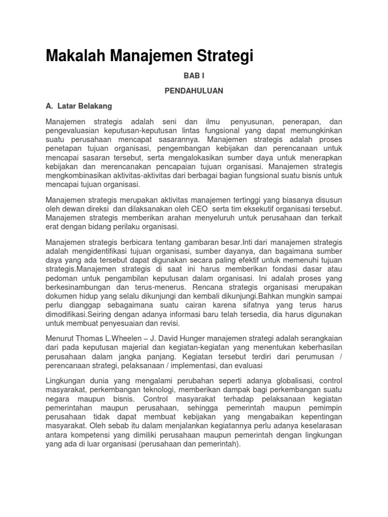 Contoh Makalah Manajemen Strategi