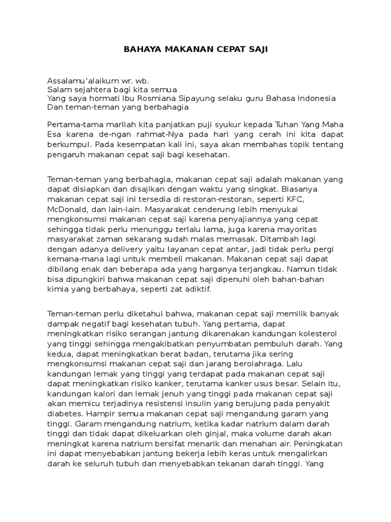 DOC) Pidato bahasa Indonesia dengan tema ‘Bahaya Makanan …