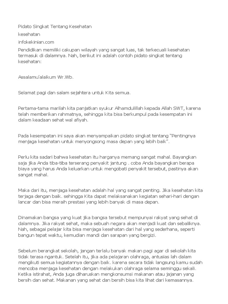 Beberapa contoh naskah pidato tentang kesehatan berbahasa …
