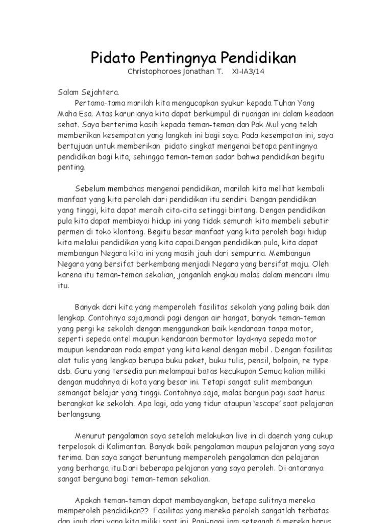 Pidato Pentingnya Pendidikan [d2nv39pmx94k]