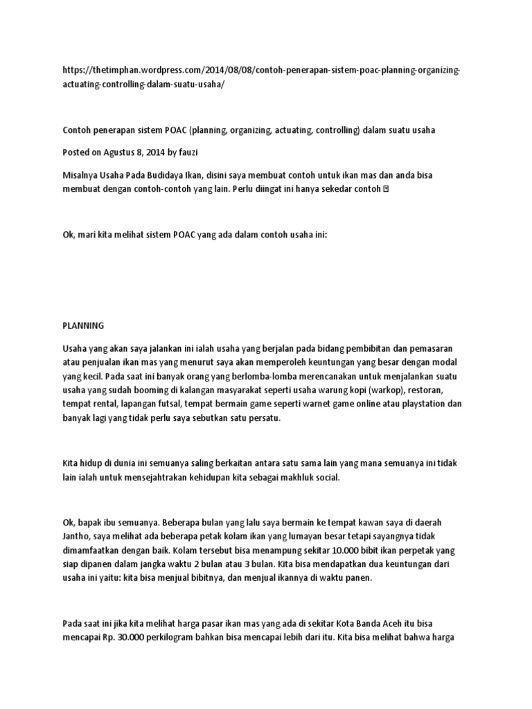 Contoh Penerapan Poac Dalam Suatu Usaha - Barisan Contoh