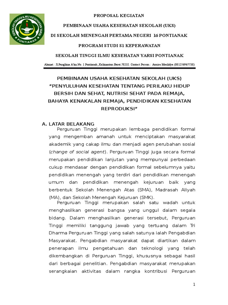 Proposal UKS Pengabdian Masyarakat Smpn 16