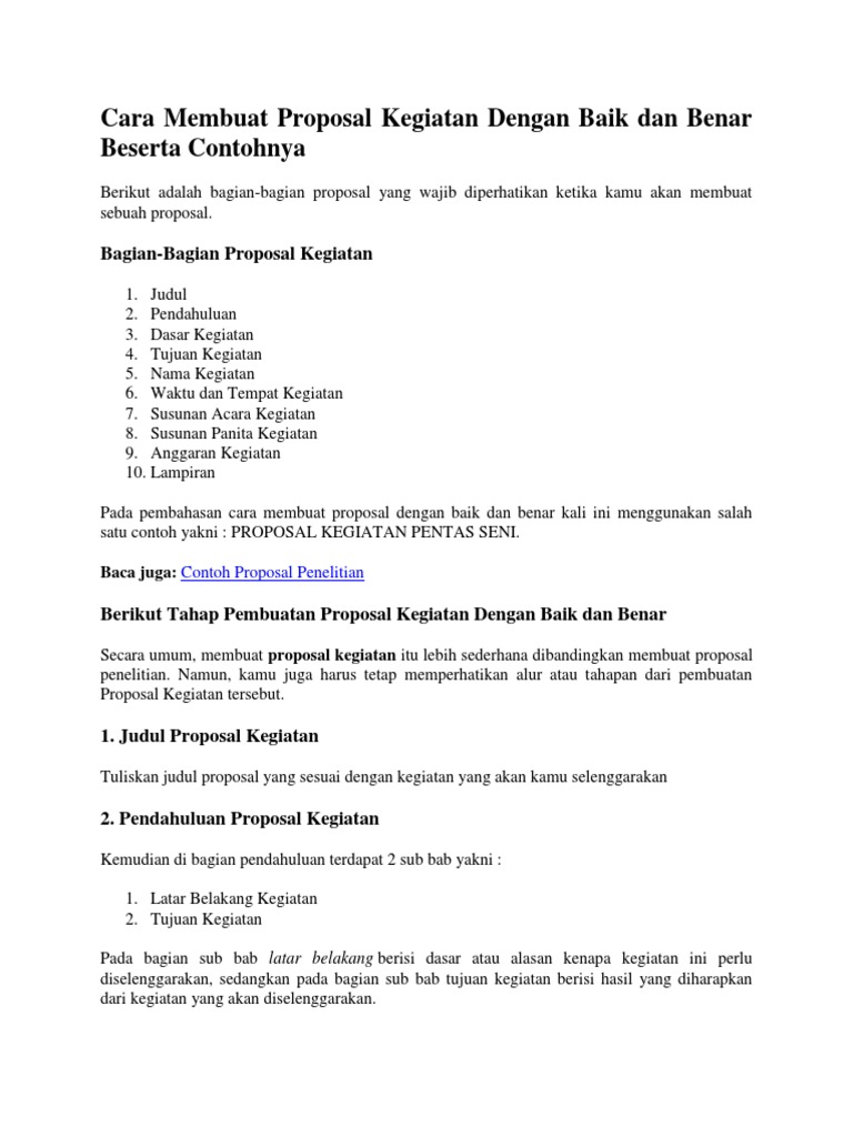 Contoh Proposal Kegiatan Yang Baik Dan Benar