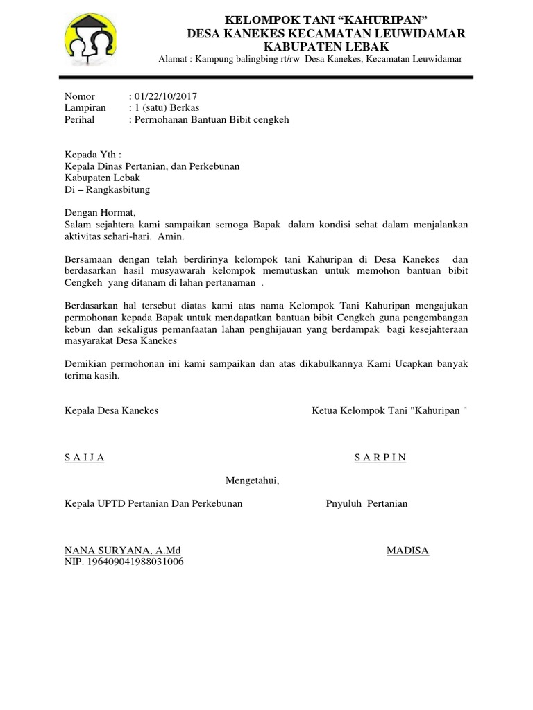 Contoh Surat Permohonan Bantuan Bibit Tanaman Kumpulan - Cute766