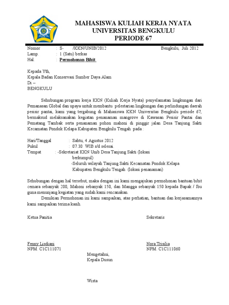 Contoh Surat Permohonan Bantuan Bibit Tanaman - Berbagi Tanam