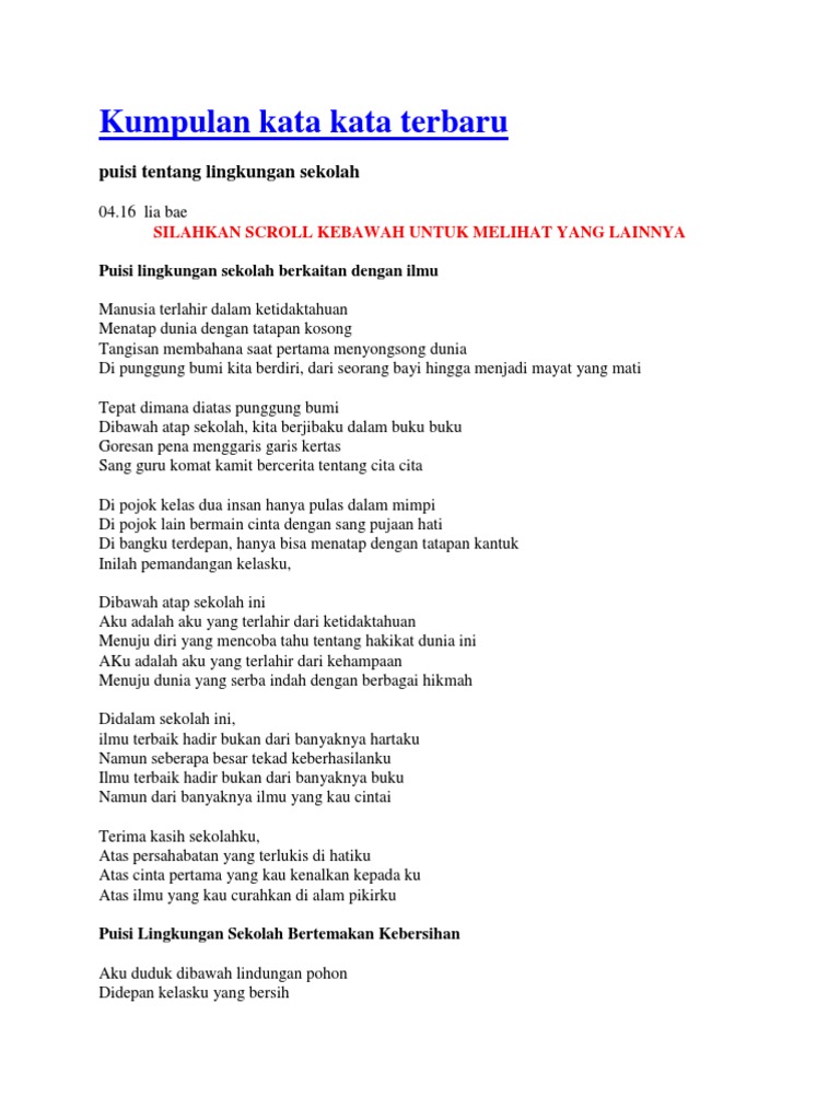 Puisi Lingkungan Sekolahku | Puisi, Lingkungan hidup, Hidup