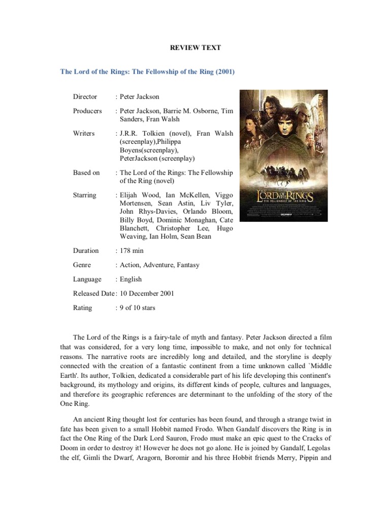 Contoh Review Text: Lord of the Rings | The Lord Of The Rings …