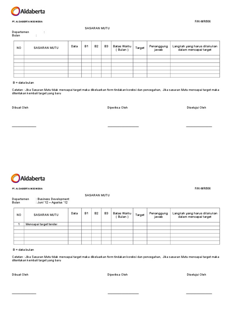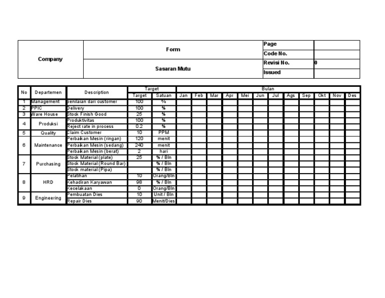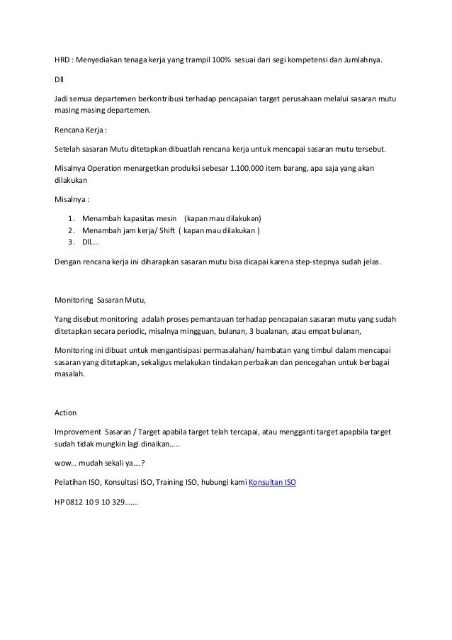Contoh Sasaran Mutu Iso 9001 - lasopapos