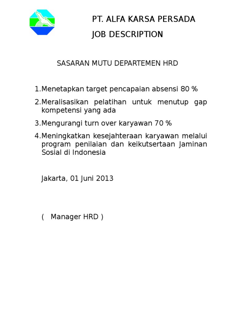 Contoh Sasaran Mutu Human Resources atau Personalia | sertifikat iso
