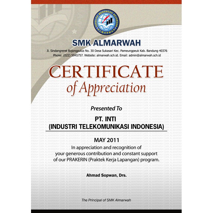 Contoh Sertifikat Praktek Kerja Industri (Prakerin) SMK filetype docx, free Download Gratis Sertifikat sekolah SMK format Word bisa die… | Sekolah, Brosur, Pimpinan