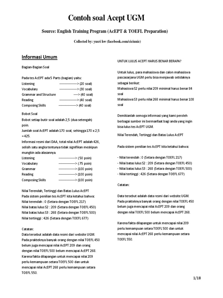 PDF) Contoh soal Acept UGM Source: English Training Program (AcEPT …