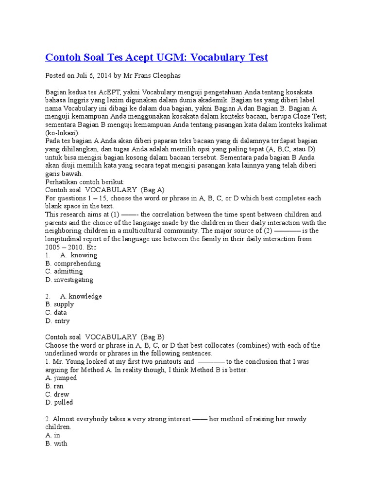 Contoh Soal Tes Acept UGM: Vocabulary Test | Pusat Pelatihan …