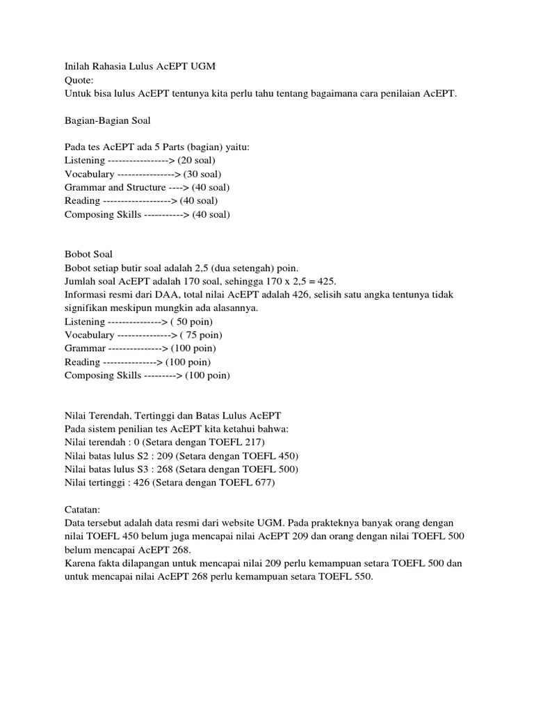Contoh Soal Tes Acept Ugm Pdf - Bagikan Contoh
